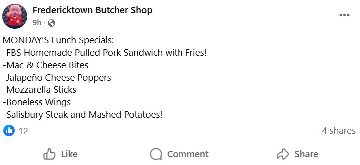 Fredericktown Butcher Shop Menu Specials